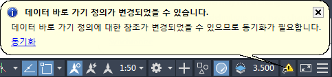 도면에 데이터 바로 가기에 대한 참조가 포함되어 있으면 도면 윈도우 하단 오른쪽에