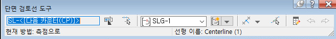 현재 단면 검토선 작성 방법, 단면 검토선가 연관된 선형 이름, 단면 검토선이 포함된 도면층 등이 도구 맨 아래 표시됩니다.