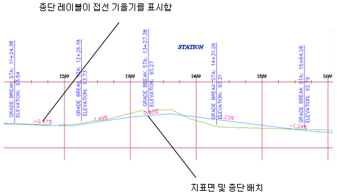 지표면 및 종단 배치를 표시하는 종단 뷰