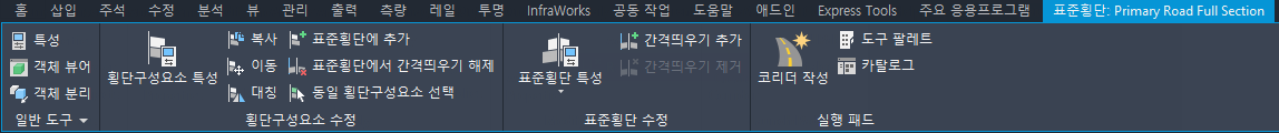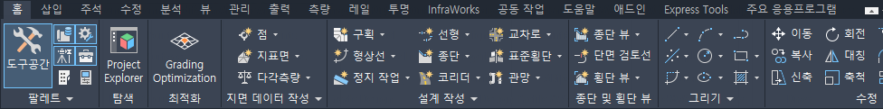 Autodesk Civil 3D 리본은 명령과 기능에 액세스하기 위한 주 사용자 인터페이스입니다.