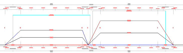 겹침이 해결된 후 공유 측점 값은 테이블 형식 편집기 또는 캔트 뷰의 그립을 사용하여 별도로 조정됩니다.