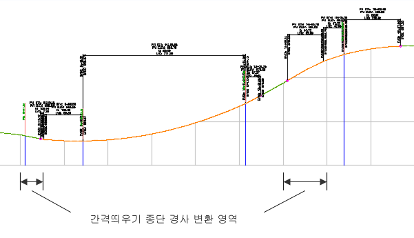 - 간격띄우기 종단 도면요소는 상위 종단 도면요소가 접선인 경우 접선이 됩니다.
