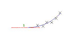 다음 그림은 도면요소 1에서 최적 맞춤으로 작성한 자유 종곡선을 보여 줍니다. X는 도면요소를 작성하는 데 사용된 데이터 점을 나타냅니다.