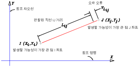 다음 그림은 거리 관찰 계산식의 지오메트리를 보여 줍니다.