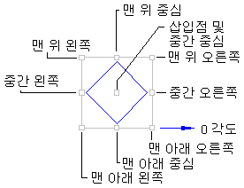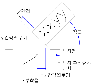 부착구성요소, 부착점 및 부착점(attchment point)을 지정하여 레이블 구성요소 위치를 정의합니다. 회전 각도와 X 및 Y 간격띄우기는 고정 부착요소 및 부착점과 관련하여 적용됩니다.