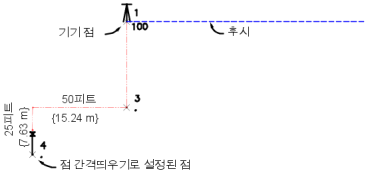 | 앞쪽 | 새 점의 위치를 찾기 위해 작성된 마지막 점과 측점 사이 선에 추가된 거리(선택적) |