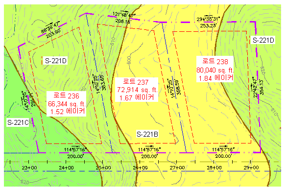 선형을 부지에 배치할 때 선형이 닫힌 영역을 형성하면 구획을 작성하고, 영역을 교차하면 부지의 기존 구획을 재분할합니다. <없음> 부지 선택을 승인하면 선형이 형성되지 못하거나 구획 또는 기타 객체와 상호 작용하지 못합니다.
