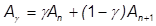 is a function of a constant gamma such that the acceleration is a weighted average of the accelerations at n and n+1: