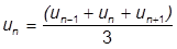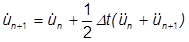 value in each expression for the solution. We will represent the displacement at the current time as the average over the adjacent times. Likewise the load can be averaged over three steps, the difference being that we know
