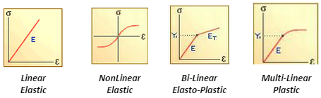 Simplified models of stress-strain curves are shown below: