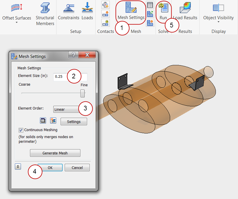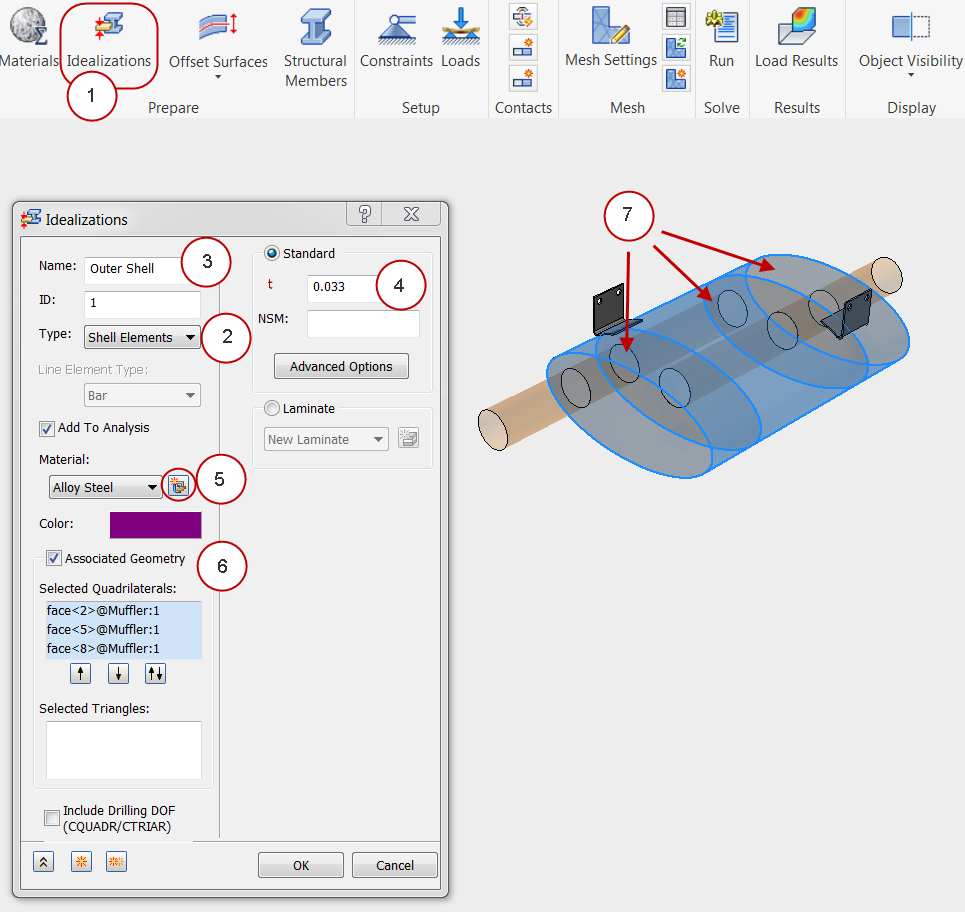 We'll use an Offset Bond contact between the brackets and the muffler shell to ensure that parts that don't touch are bonded together.