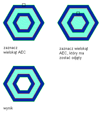 Ta procedura służy do odejmowania wielokątów AEC od siebie w celu utworzenia otworu w wielokącie AEC. Jest to użyteczne na przykład do tworzenia złożonego wzoru wypełnienia ściany kurtynowej.