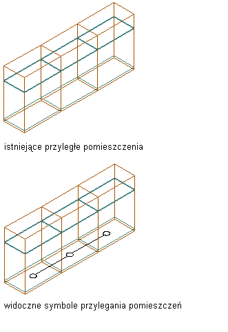 W większości przypadków relacje przylegania między powierzchniami pomieszczeń są istotne przy eksporcie i przetwarzaniu rzutu budynku w aplikacjach inżynierskich. Jeśli zachodzi potrzeba sprawdzenia stanu relacji przylegania w programie zestaw narzędzi AutoCAD Architecture 2027, można je uwidocznić na rysunku.