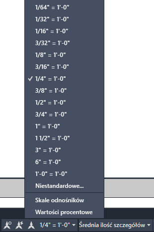 Skala opisu jest ustawieniem związanym z zakładką modelu oraz rzutniami przestrzeni papieru i również jest zapisywana z widokami modelu. Jest ona kontrolowana przez wartość zmiennej systemowej CANNOSCALE, która określa aktualną skalę opisu. Do widoków modelu i rzutni widoku papieru można przypisać różne skale opisów.