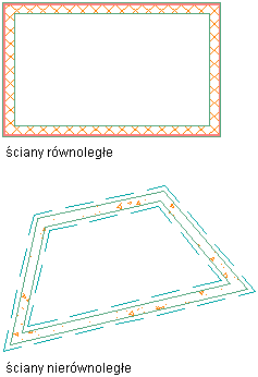 Procedura ta służy do zmiany położenia ściany za pomocą uchwytu Położenie. Podczas pracy z uchwytem położenia należy rozważyć dwa przypadki segmentów ścian: równoległe i nierównoległe.