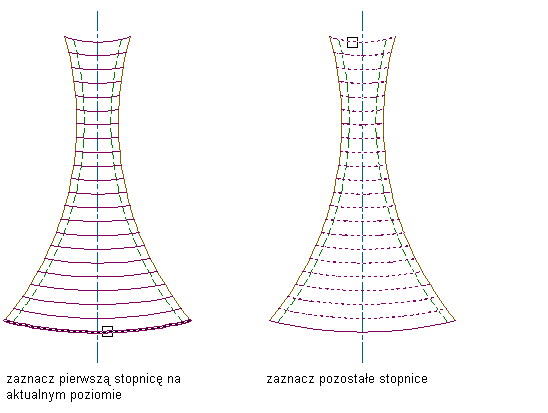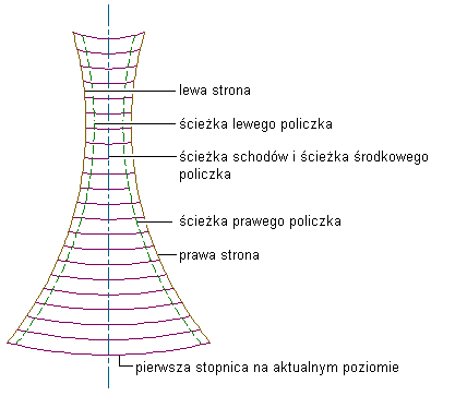 Tworzenie szkicu dla schodów użytkownika z użyciem linii, polilinii lub segmentów łuku. Wszystkie linie stopnic muszą przecinać boki schodów. Grafika reprezentująca ścieżki policzków musi być ciągła na całej długości ścieżki schodów.