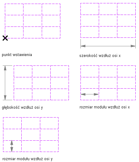 - Określ punkt wstawienia w rysunku lewego dolnego narożnika prostokątnej siatki układu.