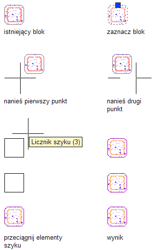 Procedura ta służy do tworzenia szyku identycznych szkiców (takich jak kreskowanie i polilinie), obiektów architektonicznych (takich jak drzwi i ściany), wielokątów AEC lub obiektów tworzonych w oparciu o profile (takich jak wyciągnięcia elementów bryłowych i pomieszczenia). Można również tworzyć szyk bibliotek opartych na blokach (włącznie z komponentami szczegółów) stworzonych z tego typu szkiców i obiektów.