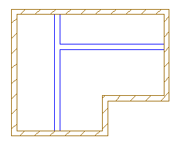 Generowanie pomieszczeń na podstawie zarysów obiektów jest przydatne w przypadku generowania pomieszczeń odejmowanych od innych pomieszczeń, np. elementu bryłowego reprezentującego szyb lub ścian reprezentujących pomieszczenie konstrukcyjne. Pomieszczenie wygenerowane na podstawie zarysów ścian powinno wyglądać następująco: