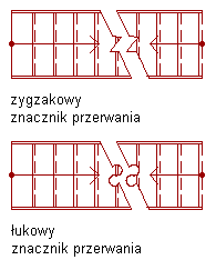 Reprezentacja wyświetlania typu plan dla schodów obejmuje opcje dla znaczników przerwania
