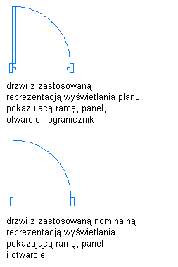 Drzwi przedstawione w nominalnej reprezentacji wyświetlania i reprezentacji typu plan