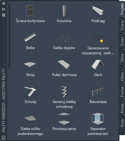 Palety użytkownika utworzone przez menedżera CAD lub innych użytkowników mogą także zawierać style i właściwości balustrad dostosowane do tworzonych projektów lub standardów obowiązujących w danym biurze.