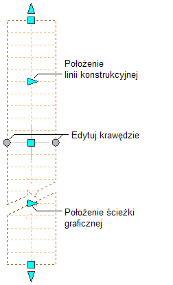 Położenie Linii konstrukcyjnej schodów prostych, Ścieżki graficznej i uchwytów Edytuj krawędzie.