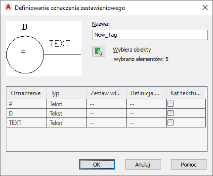 Procedura ta umożliwia utworzenie oznaczenia zestawieniowego, które zawiera dane zestawu właściwości wyświetlania dla konkretnego obiektu na rysunku.