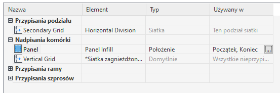 7. Kliknij pole w kolumnie Używany w, po czym kliknij przycisk [...] znajdujący się przy prawym końcu pola.
