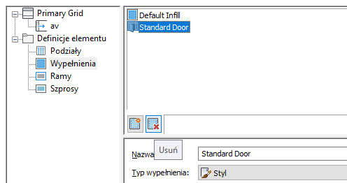 Usuwanie wypełnienia panelem z zestawu drzwi/okien