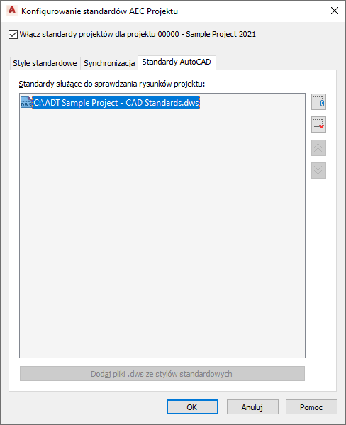 Procedura ta umożliwia ustawienie standardów AutoCAD dla projektu.