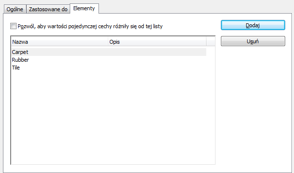 - Wybierz opcję Pozwól, aby wartości pojedynczej właściwości różniły się od tej listy, jeśli chcesz dopuścić wyświetlanie na palecie właściwości innych wartości niż określane w tym miejscu.