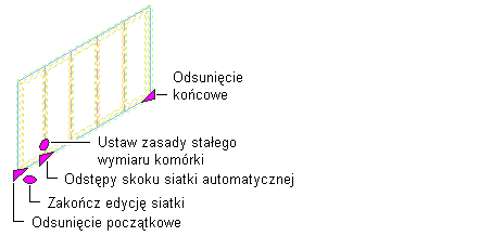 | zmienić odsunięcie końcowe siatki | kliknij uchwyt odsunięcia końcowego i przesuń go w żądane położenie. |