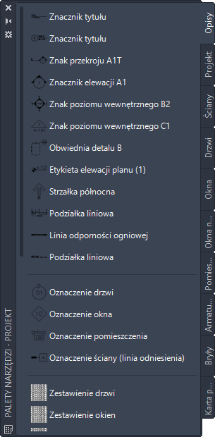 Paleta narzędzi zawierająca narzędzia etykiet elewacji