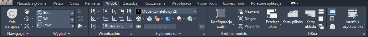 Karta Widok jest centralnym miejscem tworzenia i modyfikowania widoków oraz nawigowania po rysunku.