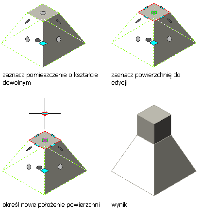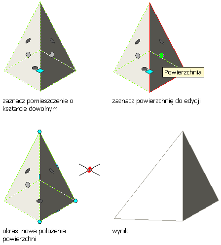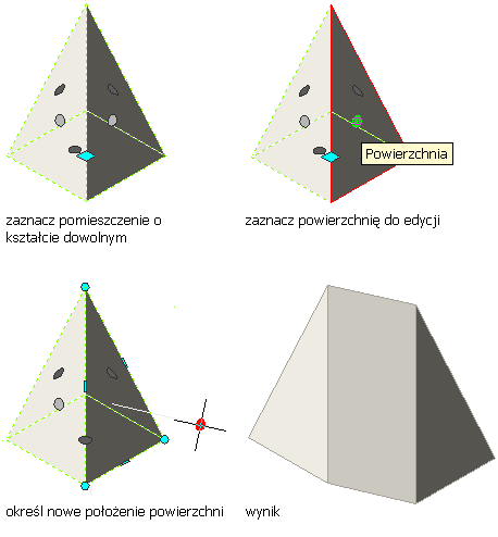 Ta procedura umożliwia edycję za pomocą uchwytów poszczególnych powierzchni pomieszczenia 3D o dowolnym kształcie