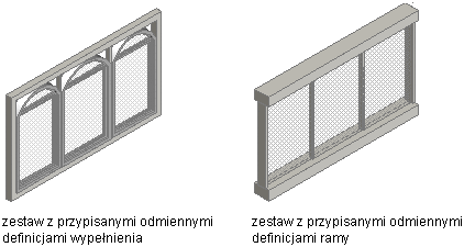 Można zdefiniować własne definicje elementów, a następnie przypisać je do zestawu drzwi i okien. Na przykład może skonstruować kilka definicji wypełnień, a następnie przyporządkować różne wypełnienia konkretnym komórkom siatki. Analogicznie można zdefiniować kilka rodzajów ram, po czym każdy typ przypisać innej krawędzi ramy (górnej, dolnej, lewej i prawej). Możliwości te dotyczą również definicji szprosów.
