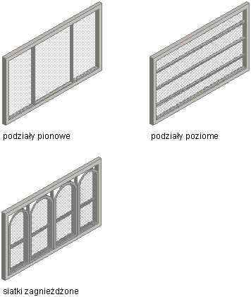 Zestawy drzwi i okien składają się z jednej lub więcej siatek. Każda siatka jest podzielona w poziomie lub w pionie. Siatki można jednak zagnieżdżać, tworząc różnorodne proste lub skomplikowane wzory.