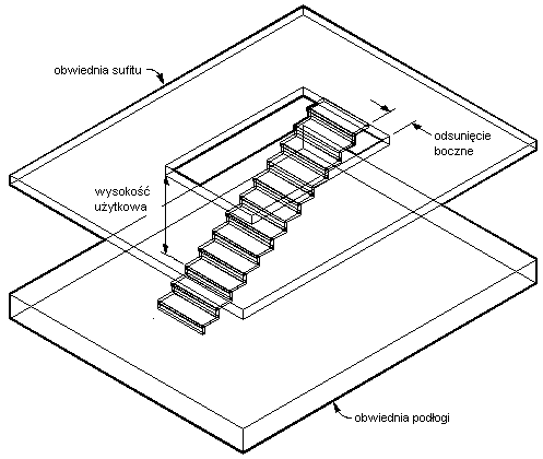 | określić wewnętrzny i zewnętrzny prześwit dla warunków przenikania dla schodów spiralnych i zabiegowych | wprowadź wartości w polach Prześwit wewnętrzny i Prześwit zewnętrzny. |