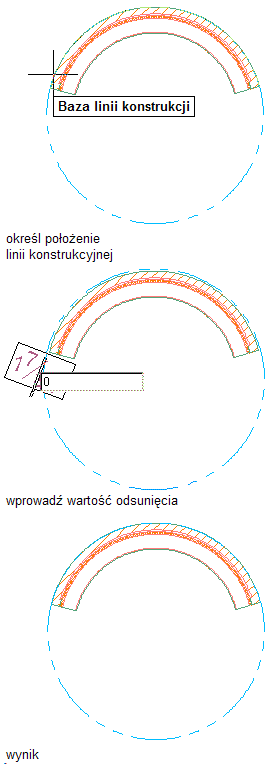 Rysowanie linii konstrukcyjnej przy odsunięciu zero w oparciu o segment łukowego odcinka ściany