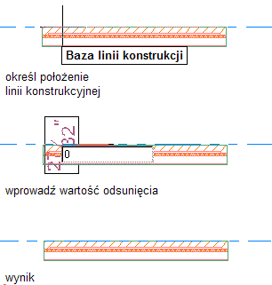 Rysowanie linii konstrukcyjnej przy odsunięciu zero w oparciu o segment prostego odcinka ściany