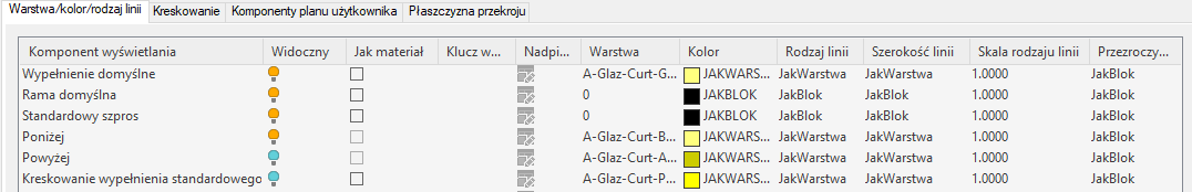 | na wysokości większej niż wartość parametru Wysokość płaszczyzny tnącej | obiekty będą wyświetlane z użyciem ustawień komponentu Powyżej płaszczyzny cięcia określonych na karcie Warstwa/kolor/rodzaj linii. |