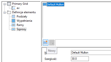 Procedura umożliwia skonfigurowanie szprosów przez określenie ich szerokości i głębokości.