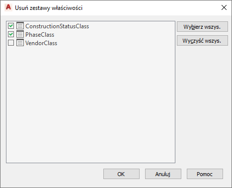 7. Usuń zaznaczenie zestawów właściwości, których nie chcesz usuwać, i kliknij przycisk OK.