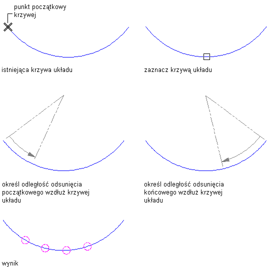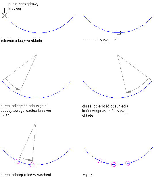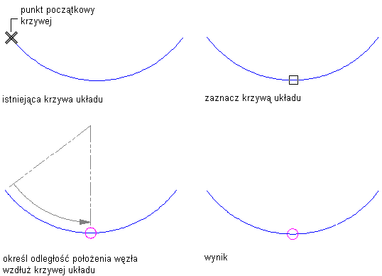 Procedura ta służy do definiowania obiektów jako krzywe układu. Odstępy miedzy węzłami zaczepienia określają odstęp między zaczepianymi obiektami dołączanymi do krzywej układu, nawet w przypadku zmiany geometrii krzywej układu.