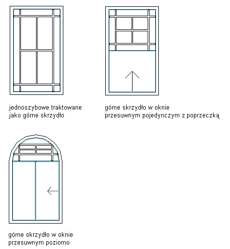| tylko górnego skrzydła | w sekcji Pole okna zaznacz pole Góra. Ustawienie Góra odnosi się również do pojedynczego skrzydła. |