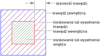 | Kreskowanie wewnętrzne | Komponent kreskowania wewnętrznej części wielokąta AEC. Uwaga: Jeżeli wymiary krawędzi są ustawione na 0, kreskowanie wewnętrzne jest jedynym kreskowaniem wielokąta AEC.