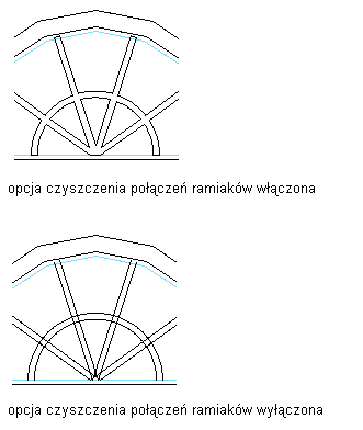 zamienić przecięcia ramiaków na naroża w pozycji Ramiaki, wybierz opcję Wyczyść połączenia.