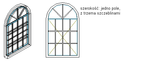Wzór gwieździsty można dodawać tylko do górnej ramy okna. Wzór gwiaździsty można stosować do kształtów okien z zaokrągloną, półzaokrągloną lub ćwierćzaokrągloną górą.