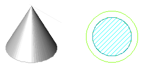 Postępuj zgodnie z tą procedurą aby utworzyć element bryłowy Stożek. Punktem wstawienia elementu bryłowego typu stożek jest centroida jego dolnej powierzchni.